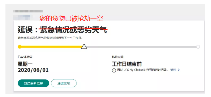 美国“暴乱”持续蔓延,UPS、FedEx货车内包裹被暴乱人群盯上了。如果你的快递发到美国,一直查询不到货物信息,那么你的货物可能被抢了。不少卖家表示:现在UPS提货后,完全没信息更新,查询UPS物流页面出现因紧急情况出现延误的提示,UPS近期派送服务严重受影响。